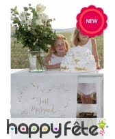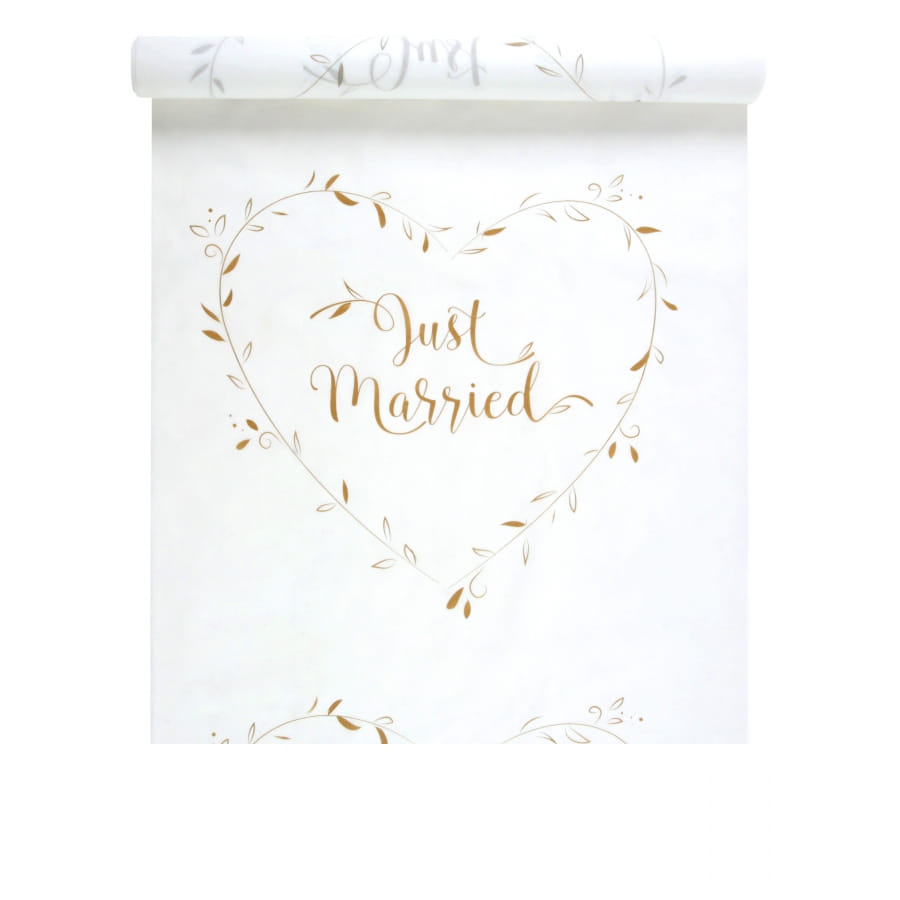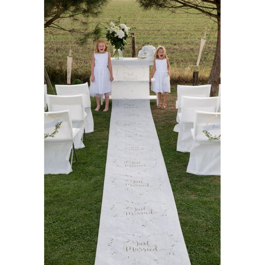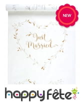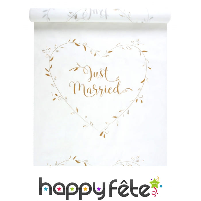 Avec ses 10 m x 75 cm, ce tapis blanc comporte les inscriptions dorées "Just Married", parfaitement calligraphiées, pour rendre votre jour encore plus spécial.