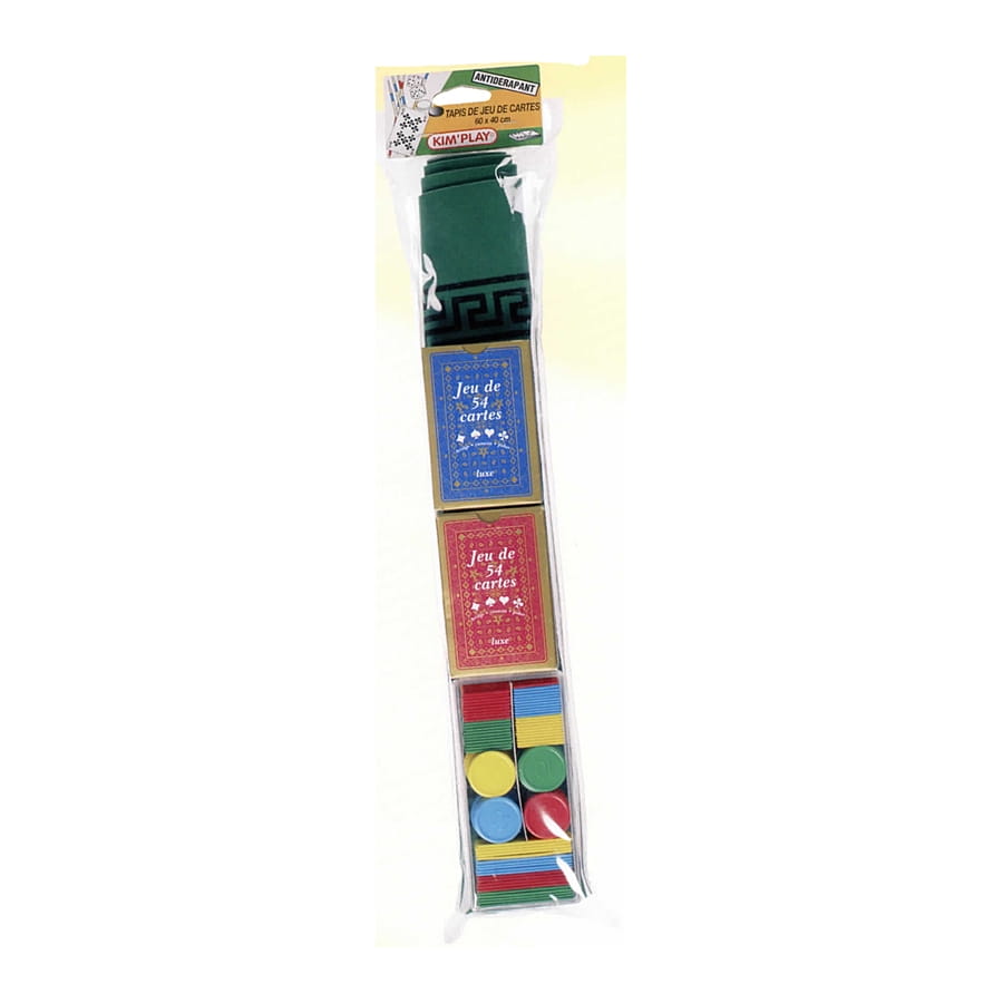 Enfin, on entre dans la cour des grands avec ce set de jeux de cartes! Vous pourrez jouer au black jack, au poker et à de nombreux autres jeux de cartes de casino avec ce tapis de jeux, ces 2 jeux de cartes et ces 100 jetons marqués. Maintenant, vous n'aurez plus besoin de vous ruiner au casino, vous pourriez organiser vos propres tournois à la maison. Allez, n'attendez plus, procurez vous ce jeu et invitez vos amis pour une bonne soirée!