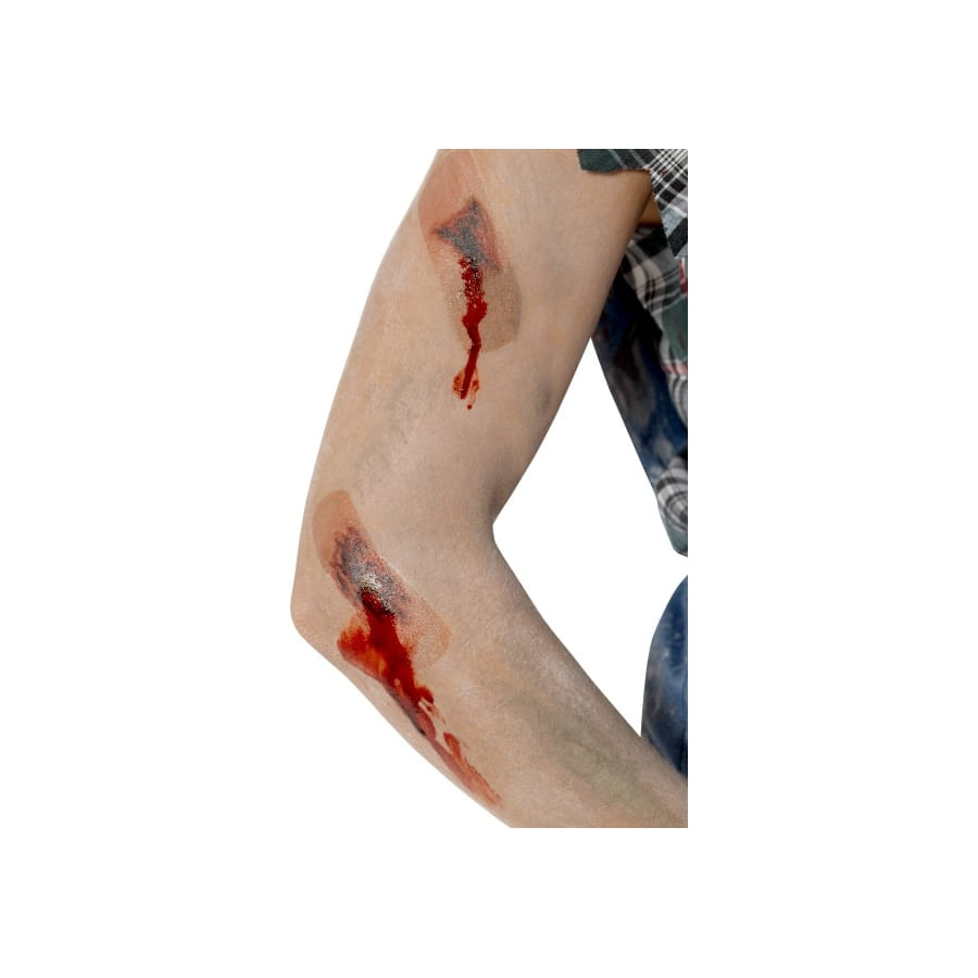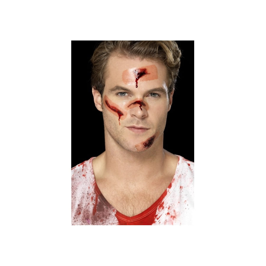 Le tatouage blessures et pansements arrachés est un ensemble de faux petits tatouages à coller sur le corps. Ils imitent des plaies visibles après que les sparadraps aient été retirés, laissant même des traces. Ce lot de tatouages inspire la douleur, ce qui en fait un cosmétique idéal pour la fête des morts. D'ailleurs, cette impression se trouve renforcée par sa couleur rouge, avec un écoulement de sang. Muni d'un tel cosmétique, votre déguisement d'halloween s'en verra encore plus réaliste !