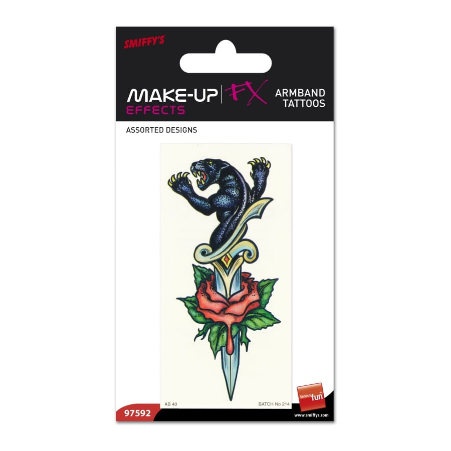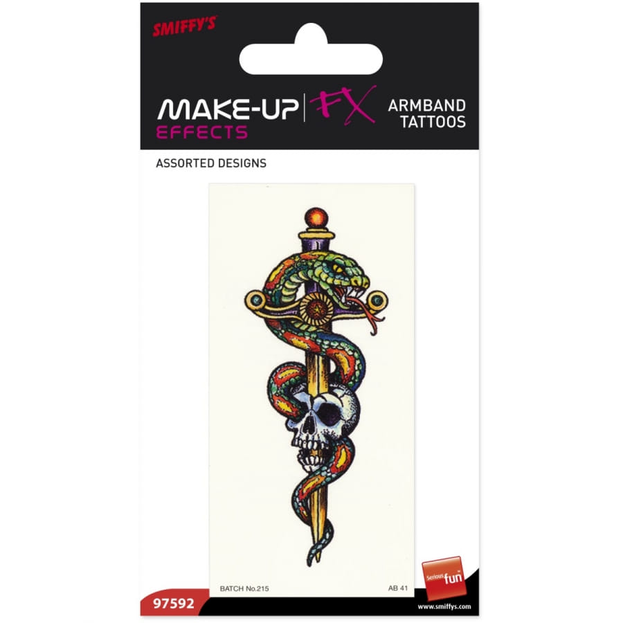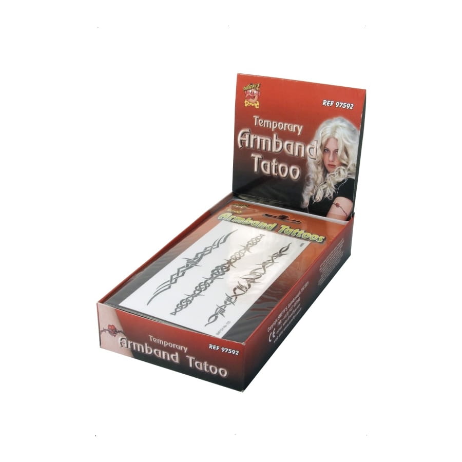 Pour changer de look ou pour faire croire que vous avez un tatouage rien de mieux que de se servir de cette boite de tatouage. Ces tatouages pour bras sont vendus par boite de 50. De couleur noir il y a des différent motifs dessus.