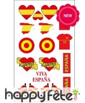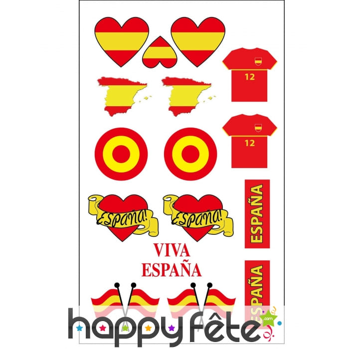 On retrouve sur la planche des tatouages en forme de coeur, de maillots de foot, de carte de l'Espagne ou encore de drapeaux espagnols.
