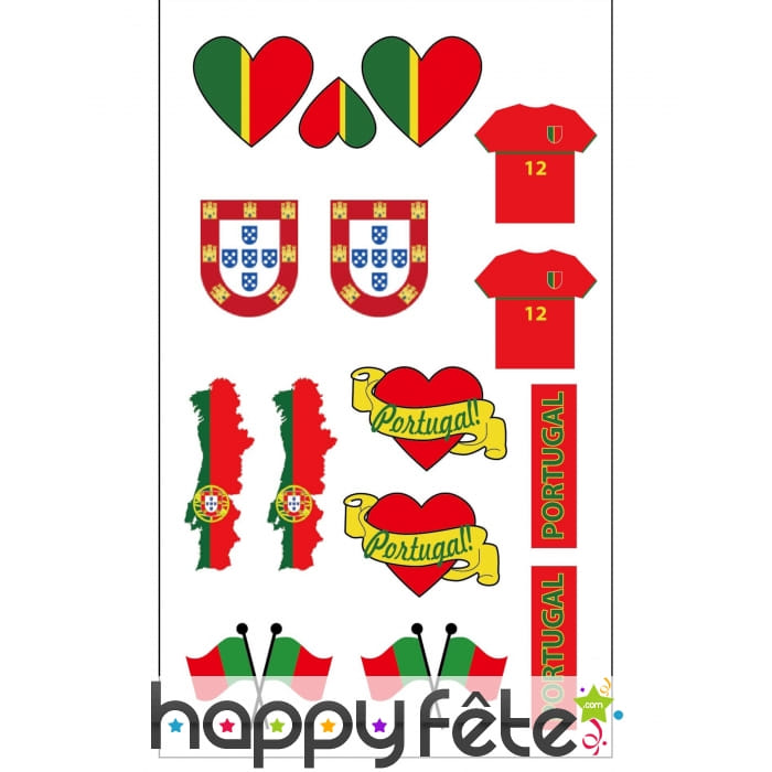 Ces tatouages sont temporaires et portent tous les couleurs du drapeau portugais.