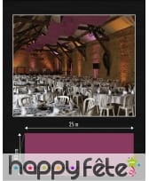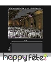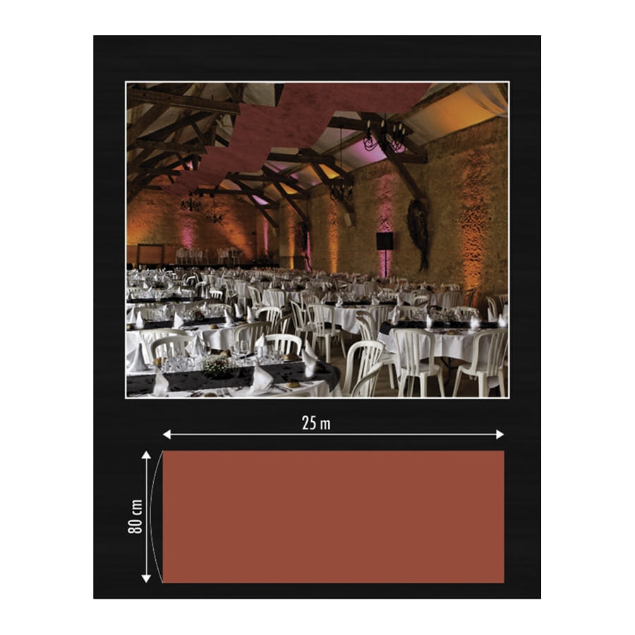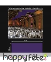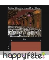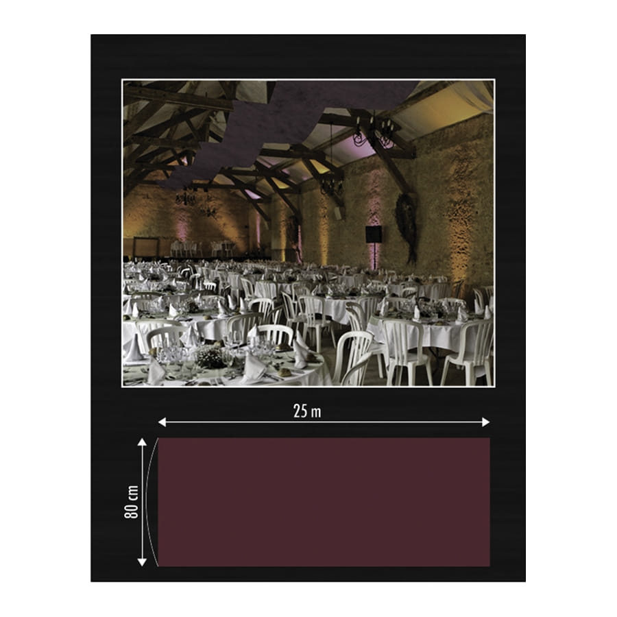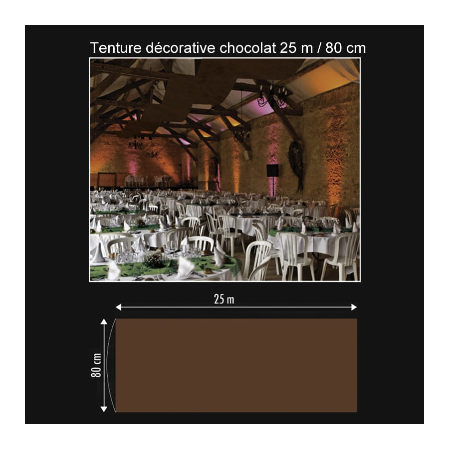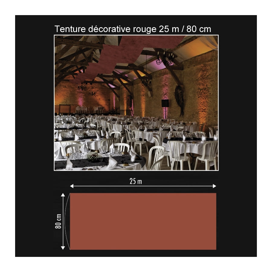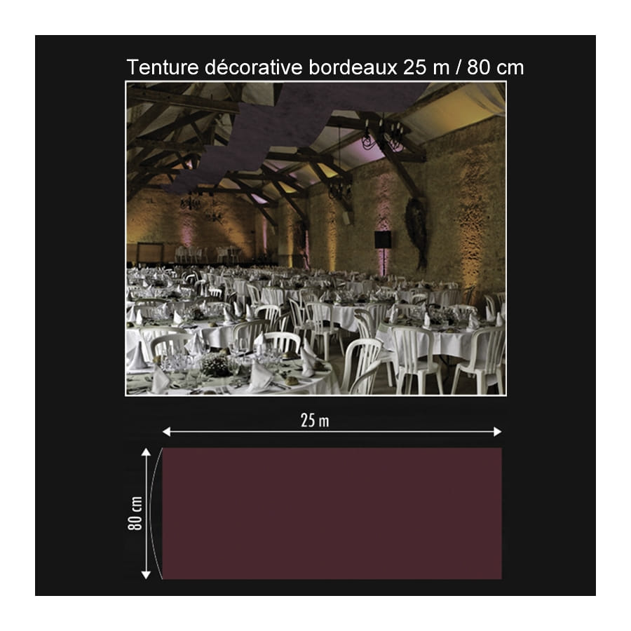 Cette tenture décorative vous sera indispensable pour orner un mur ou un plafond. Avec ses 25 m de long sur 80 cm de large, elle fera largement l'affaire pour une grande occasion. Elle est collée sur deux rouleaux en carton afin de vous permettre de la suspendre plus facilement. Vous disposerez d'un large choix de couleurs : anis, blanc, bleu roi, bordeaux, chocolat, fuchsia, gris, ivoire, noir, orange, parme, prune, rose, rouge, taupe, turquoise et violet. Il est à noter que ce modèle a été conçu en tissu intissé. Il ne supporte donc pas la pluie.
