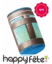 Il est confectionné en tissu et présente des motifs imitant la cotte de maille au recto et au verso.