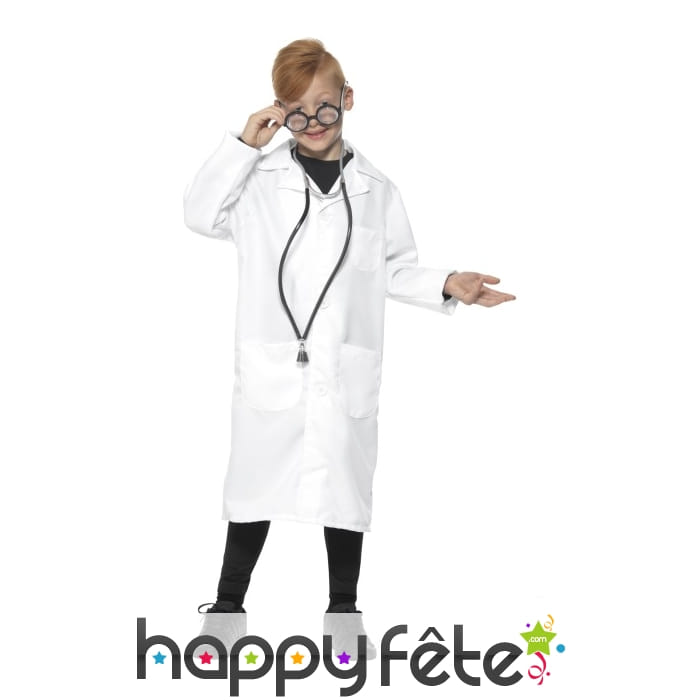 Au boulot ! Bienvenue dans le laboratoire des déguisements. Avec cette tenue blanche de médecin scientifique pour enfant, filles ou garçons pourront se familiariser avec le monde de la science. Ils se constitueront un véritable uniforme de médecin grâce à cette blouse de couleur blanche. Elle est dotée de longues manches et sa longueur dépasse les genoux. Très facile à porter, elle n'a pas besoin de beaucoup d'artifice pour composer un déguisement. Vous pourrez tout de même ajouter quelques accessoires pour un effet plus réaliste. Un stéthoscope et une paire de lunettes feront l'affaire, vous disposerez d'un large choix de modèles sur happyfete. Cet article vous est proposé en différentes tailles selon l'âge de l'enfant : entre 4 et 12 ans.