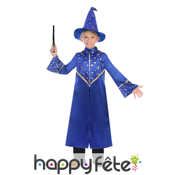 Déguisez votre enfant en un grand vendeur d'illusions, en lui offrant cette tenue bleue de magicien pour enfant.