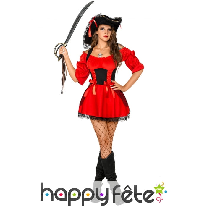 Faites régner la terreur sur les mers comme Anne Bonny grâce à cette Tenue courte de femme pirate rouge.