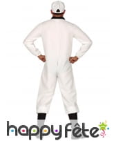 Il s'agit d'une combinaison blanche avec de longues manches qui se terminent par des élastiques.