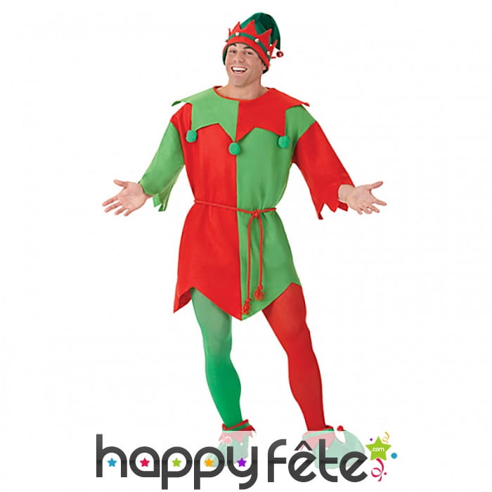 Tunique d'Elf de Noël pour homme adulte avec ceinture corde.
