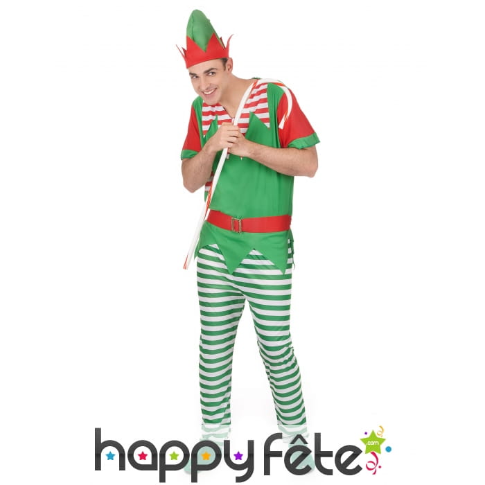 Nous vous présentons ici une tenue d'elfe de noël pour homme.