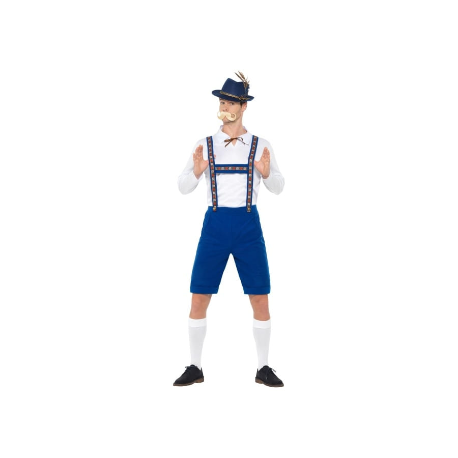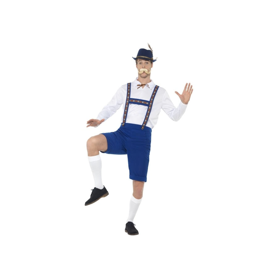 Petite évasion dans La Bavière ! Revêtez un style très authentique en adoptant cette tenue de Bavarois en salopette bleue. Vous pourrez alors vous créer une nouvelle identité à travers ce déguisement inspiré de la culture bavaroise. Il comprend une chemise blanche à manches longues, avec un fin noeud marron au niveau du col. Elle est complétée par une salopette de couleur bleue. Le bas est un short légèrement ample dont la longueur descend juste au dessus des genoux. Il est accompagné de bretelles à motifs. Il s'agit d'une tenue à privilégier pour la célébration de la fête de la bière. Elle est aussi adaptée pour toutes sortes d'occasion comme le carnaval ou les soirées à thème.