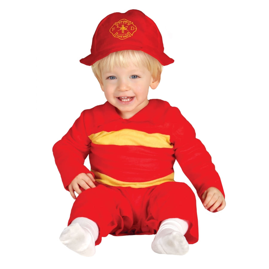 La tenue de bébé pompier rouge est conçue pour les petits garçons.