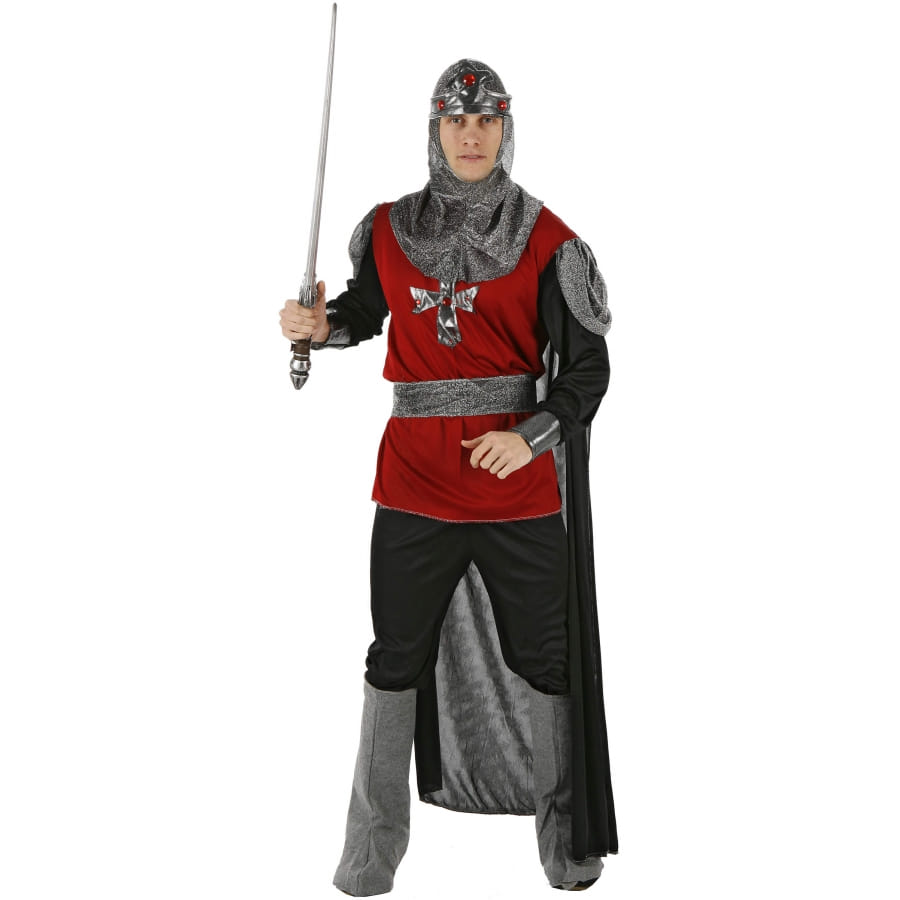 Un chevalier se reconnait toujours à son armure. Avant de partir à l'aventure, munissez-vous du meilleur attirail. Devenez la star d'une soirée déguisée dans votre tenue de chevalier médiéval rouge et noir. Le déguisement est formé par une tunique à manches longues, de couleur grenat et noire. La taille sera ajustée à l'aide d'une ceinture imitation cuir. Une paire de bracelets de couleur assortie à la ceinture viendra habiller les poignets. Le casque est incrusté de trois fausses pierres rouges. Une paire de surbottes imitation cuir viendront parfaire la tenue. Force et courage vous accompagneront à travers votre déguisement inspiré de l'époque médiévale. Vous pourrez aussi sélectionner une épée parmi un large choix de modèles, toujours sur happyfete !