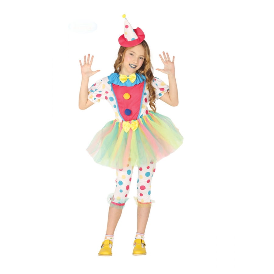 La tenue de clown à pois avec tutu et chapeau est un costume pour fille constitué de 3 pièces.