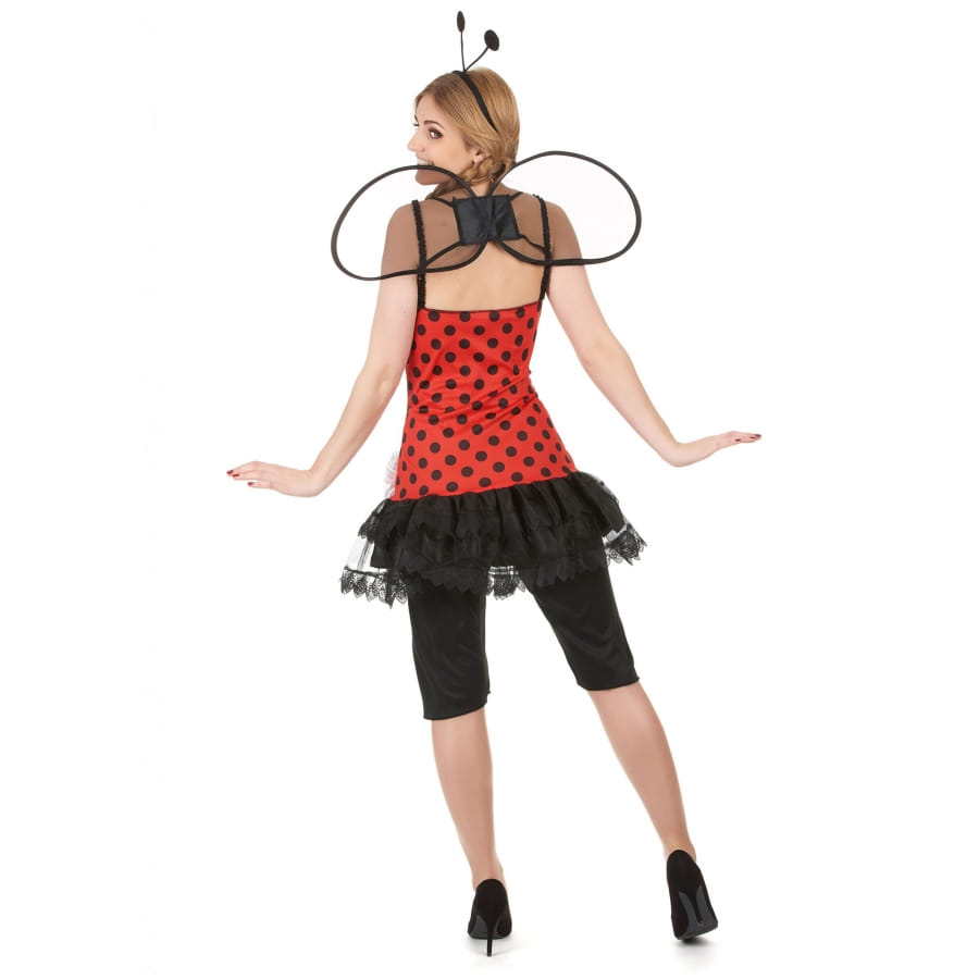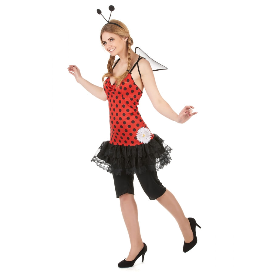 La coccinelle n'est pas qu'un simple animal qui porte bonheur. Ses belles couleurs peuvent aussi être utilisées pour constituer un charmant déguisement. Un événement à venir ? Emparez-vous de cette tenue de coccinelle rouge à pois pour femme. Elle comporte une courte robe à bretelles, de couleur rouge à pois noirs. A la taille, elle est agrémentée d'un voile noir en tulle avec fausse fleur blanche sur le côté gauche. L'article inclut également un legging de couleur noire, élastique à la taille, et dont la longueur descend jusqu'aux genoux. Vous ne pourrez pas vous envoler sur la piste de danse sans votre paire d'ailes. Celles-ci sont équipées de bretelles élastiques pour la fixation. Deux petites antennes ont été posées sur un serre-tête pour accessoiriser votre coiffure.
