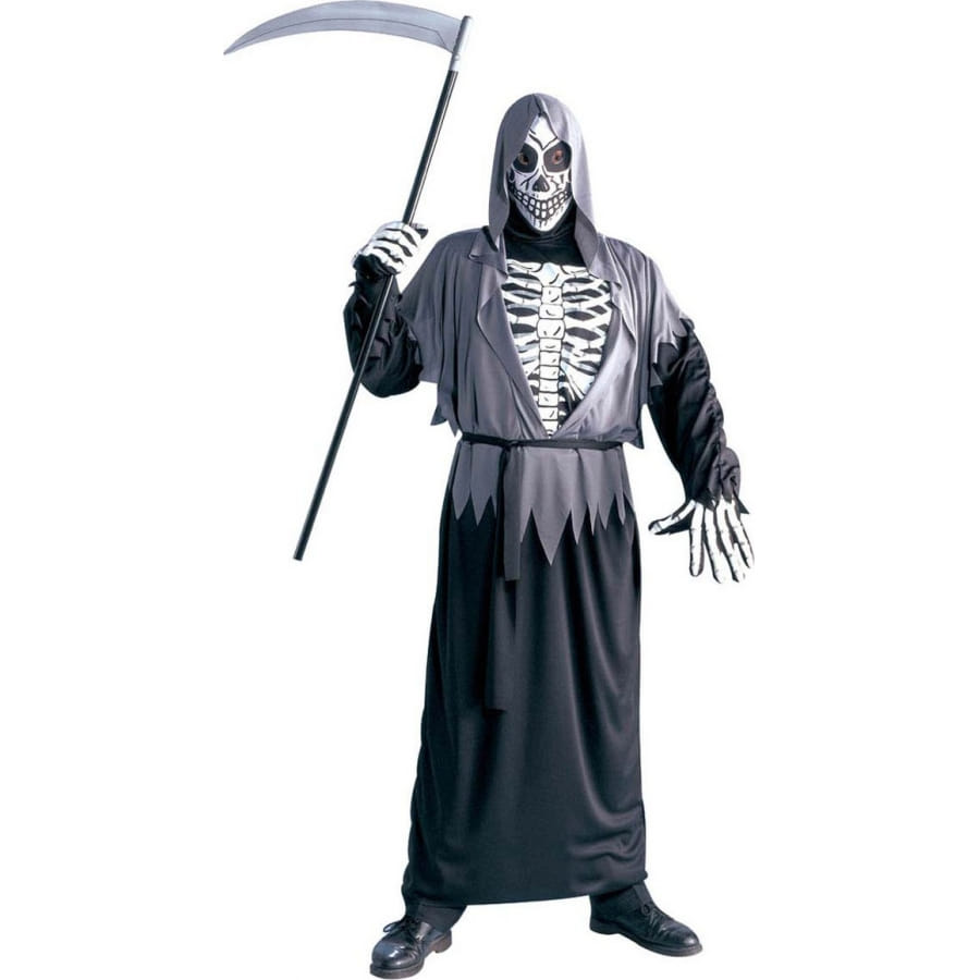 Cette Tenue de faucheur squelette pour adulte comprend une robe à capuche et un masque.