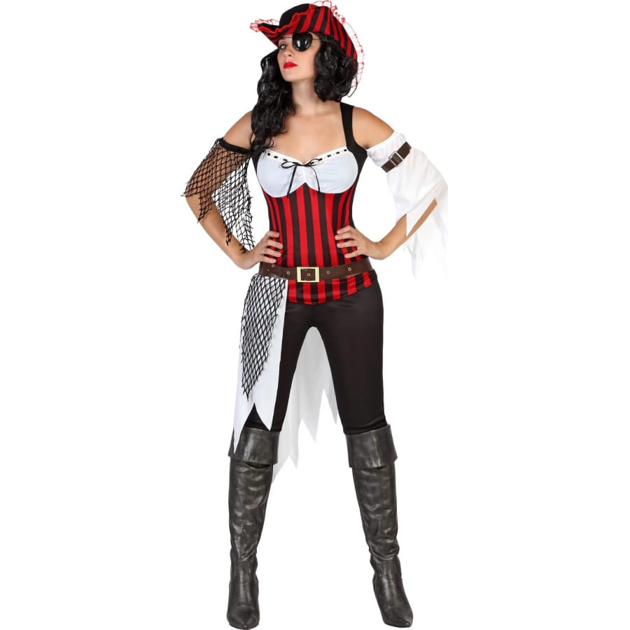 Les avis clients concernant tenue de femme pirate à rayures noires et rouges