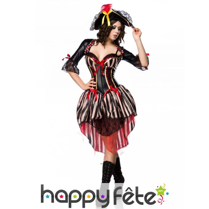 Tenue de femme pirate rouge avec corset
