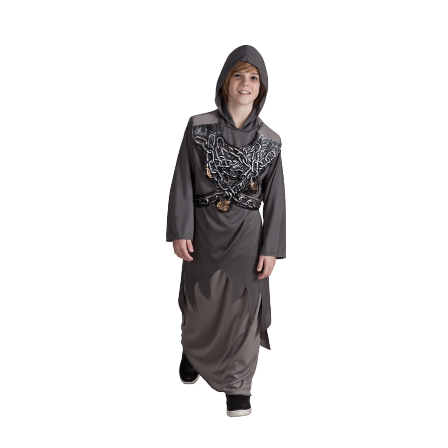 Lors de l'époque médiévale, les gardiens de prison ont une tenue spéciale. En général, dans les films, ces derniers doivent mettre une robe longue avec une capuche pour recouvrir la tête. Dans la majorité des cas, le tissu est toujours sombre. Notre article présente la même allure, mais il est plutôt conçu pour les petits enfants. Alors, pourquoi ne pas déguiser votre gamin en un bourreau sans pitié à Halloween ? De plus, la robe est bien personnalisée avec des motifs de chaine et de cadenas juste au niveau de la poitrine. Simple et très en vogue, ce déguisement reste disponible sur notre site.