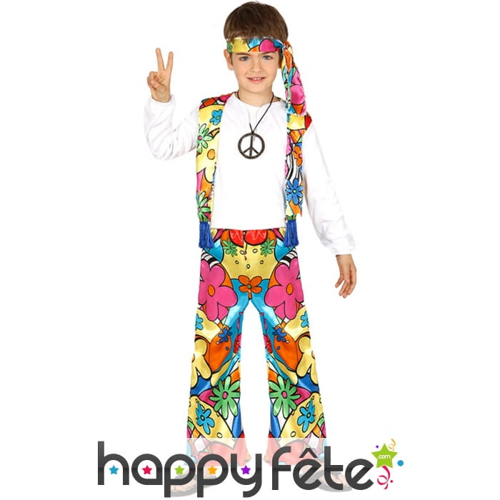 Cette Tenue de hippie Peace and Love fleurie pour enfant sera idéale pour vous déguiser en un défenseur de la paix.