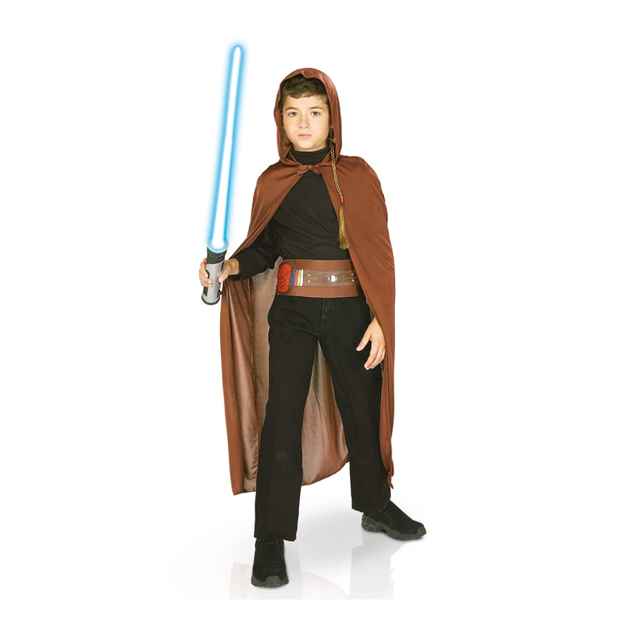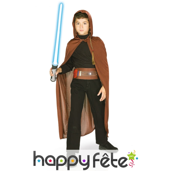 Pour que la paix règne dans toute la galaxie, les futurs chevaliers Jedi doivent suivre un entrainement très spécial. La science fiction et la réalité ne feront plus qu'un lorsque votre petit garçon enfilera sa superbe tenue de Jedi pour enfant. Ce kit sous licence Star Wars sera le bienvenu lors des anniversaires et fêtes déguisées en tout genre. Il comprend en premier lieu une cape marron avec capuche intégrée. Une ceinture de couleur marron avec quelques motifs imprimés viendra entourer la taille du vaillant guerrier. Il aura également droit à une fausse tresse de Jedi et à un sabre qui sera son arme ultime pour faire le bien.