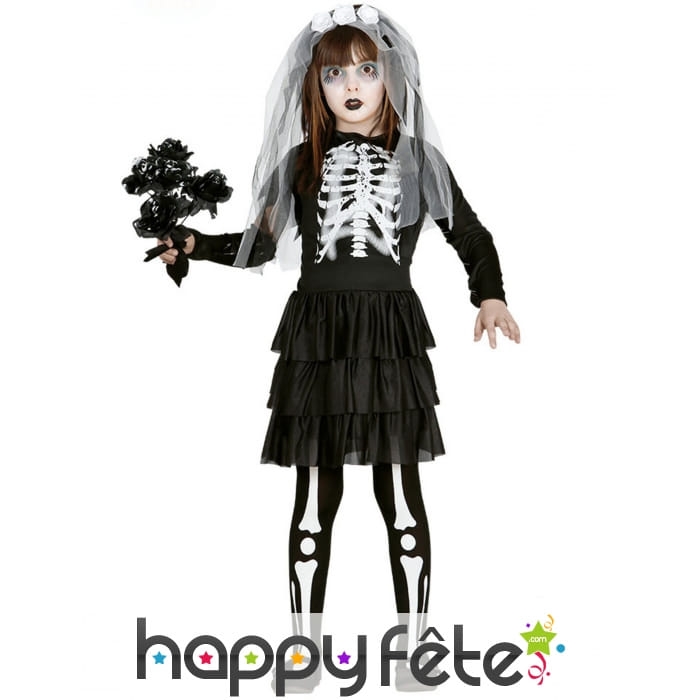 Cette tenue de mariée squelette pour enfant, transformera votre fille en une mariée pas tout à fait ordinaire.