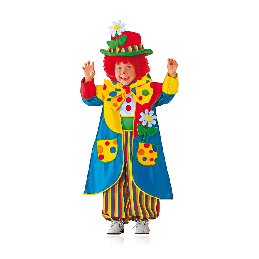 Rajoutez-y une petite perruque de clown, à retrouver parmi nos accessoires, et le petit sera fin prêt à faire rire tout le monde.