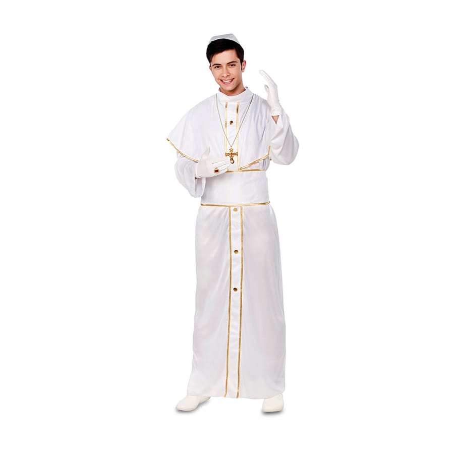 La tenue de pape blanc et doré pour homme est composée d'un calot, d'une tunique et d'une ceinture.