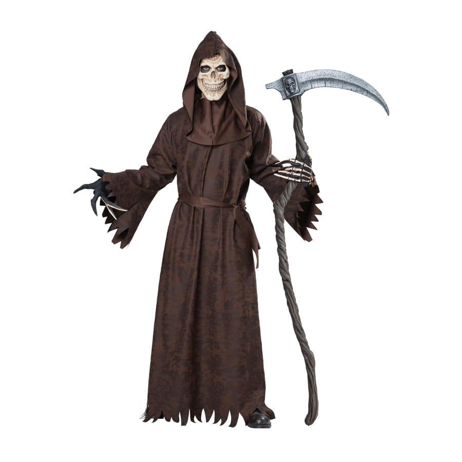 Lors de la soirée d'Halloween, Messieurs, vous serez dans la peau d'un tueur en enfilant cette tenue de passeur d'âme squelette. La robe couvre parfaitement tout le corps et la ceinture s'ajuste au niveau de la taille. Les bords des manches ainsi que de la jupe sont découpés en dent de scie. Et pour évoquer parfaitement le personnage, l'ensemble est accompagné d'un masque terrifiant et d'un gant qui forme un squelette. Il vous suffit juste de trouver une canne avec une lame tranchante comme accessoire. Et c'est parti pour frissonner la famille et le voisinage.