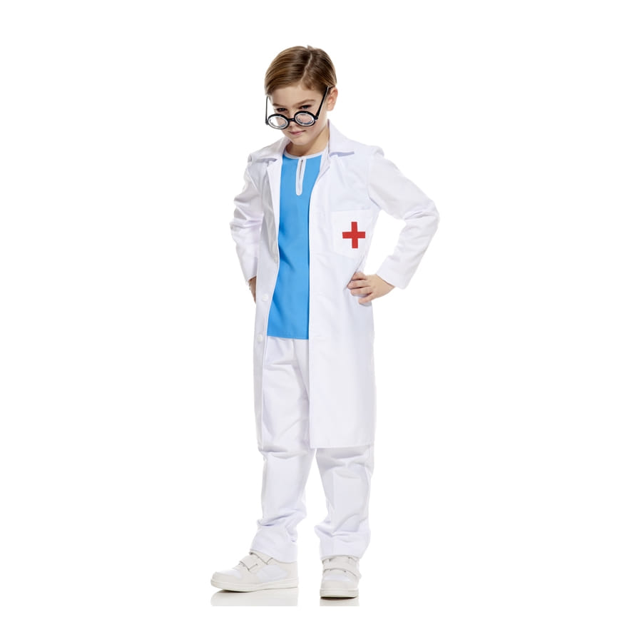 Allo Docteur, nous avons une urgence ! Dans une pièce de théâtre, une fête de l'école ou lors d'une fête costumée, le rôle du médecin est toujours primordial. Votre petit garçon devra enfiler sans plus attendre sa tenue de petit médecin en tablier avant d'aller sauver une vie. Pour exercer le métier de médecin dans les règles, il portera une tenue très typique : un tablier bleu clair avec un pantalon blanc. Par dessus cette tenue, il mettra sa belle blouse blanche à manches longues avec motif croix rouge sur le côté. Le déguisement a été conçu en différentes tailles au choix, pour les petits garçons de 5 à 11 ans.