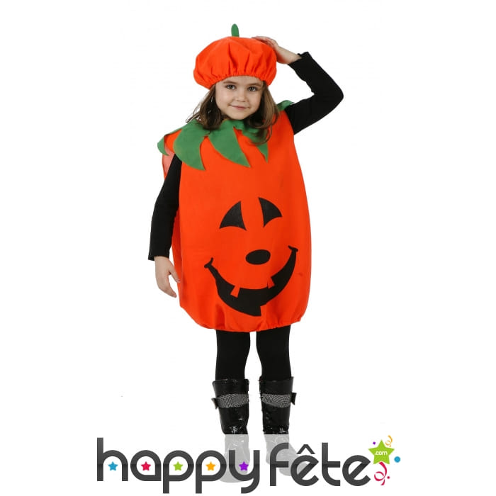 Comme une citrouille, c'est l'ensemble idéal à porter au jour d'Halloween ou lors d'un événement costumé. Cette tenue de petite citrouille orange est à dénicher sur le site Happyfete.com, le spécialiste des déguisements en tous genres. Sa tunique orange arbore une collerette verte imitant les feuilles. Le bonnet assorti comprend un pompon vert. Très connoté Halloween avec la face de citrouille imprimée sur le haut. Ce modèle est convient aux fillettes de 3-4 ans dont la taille oscille entre 98 et 115cm.