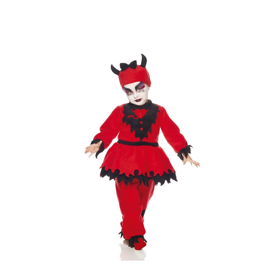 Si vous souhaitez déguiser votre bambin en petite diablesse pour Halloween, cet article est susceptible de vous plaire. Il inclut tout ce qu'il vous faut pour un déguisement au top. La tenue est essentiellement composée d'un ensemble rouge avec des bords noirs coupés en dents de scie. Le haut imitant la forme d'une veste à tutu, à l'intérieur de laquelle se trouve une chemise rouge intégrée. Un petit col décore celle-ci. La coiffe assortie est ornée de 2 petites cornes rouges et d'un noeud au milieu. Le modèle se décline en diverses tailles, pour les fillettes de 1 an, 2 ans et 3 ans.