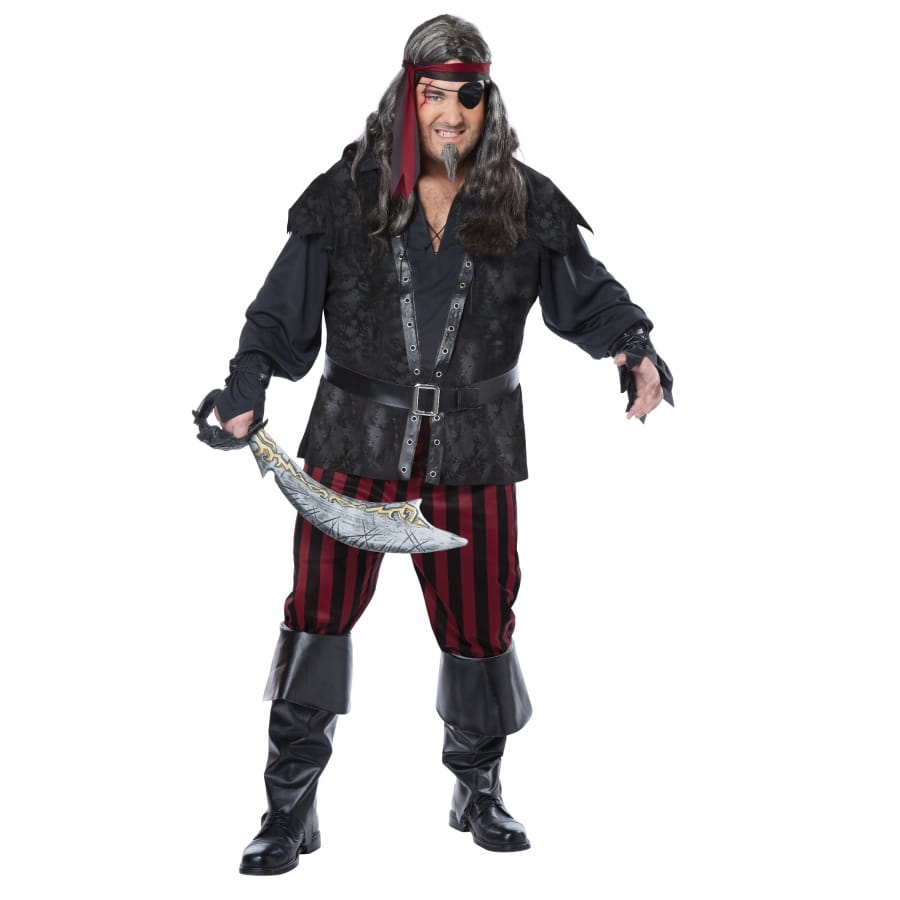 • Costume de pirate grande taille pour adulte comprenant 1 pantalon, 2 tours de poignet, 1 haut, 1 paire de couvre-bottes, 1 bandeau et 1 ceinture.