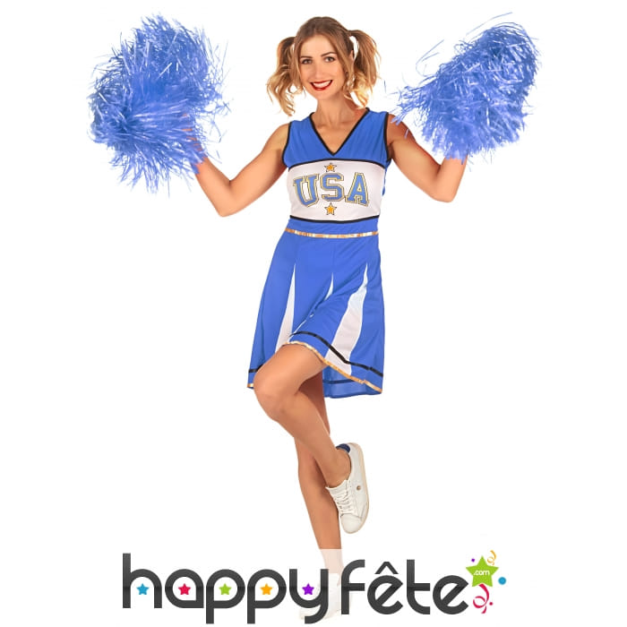 Attention, cette tenue est vendue sans les pompons, mais pas de panique ! Vous pourrez facilement les trouver sur notre site pour compléter votre look de cheerleader. Alors, enfilez votre tenue de pompom girl bleue et blanche et préparez-vous à encourager votre équipe préférée avec style et énergie !