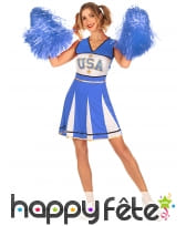 Envie de vous mettre dans la peau d'une cheerleader américaine ? Ne cherchez plus, notre tenue de pompom girl bleue et blanche est là pour vous ! Ce déguisement coloré et dynamique vous permettra de mettre le feu à la piste de danse lors de votre prochaine soirée costumée.