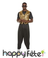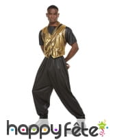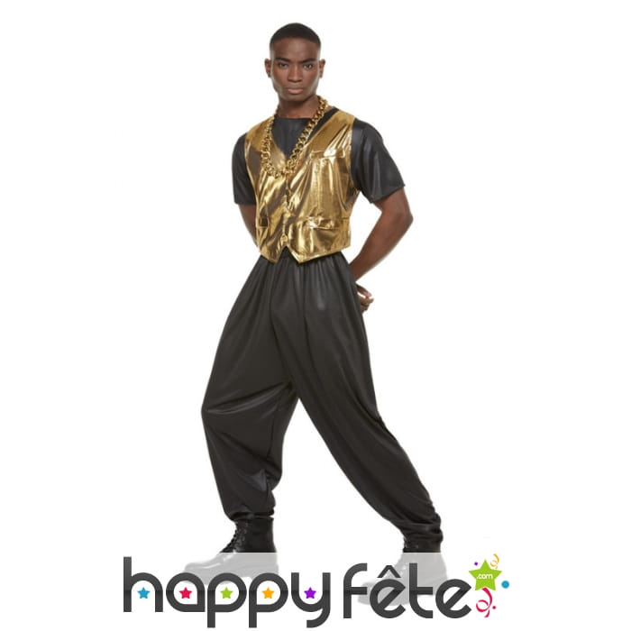 Révélez au monde vos talents de danseur lors d'une soirée sur le thème bling bling, grâce à la tenue de rappeur noire et dorée pour adulte.