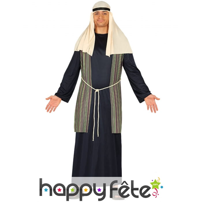 Et pour apporter la touche finale à ce déguisement de roi mage, une coiffe faite d'un long voile et d'un bandeau noir qui permettra de maintenir le voile sur votre tête est fournie.