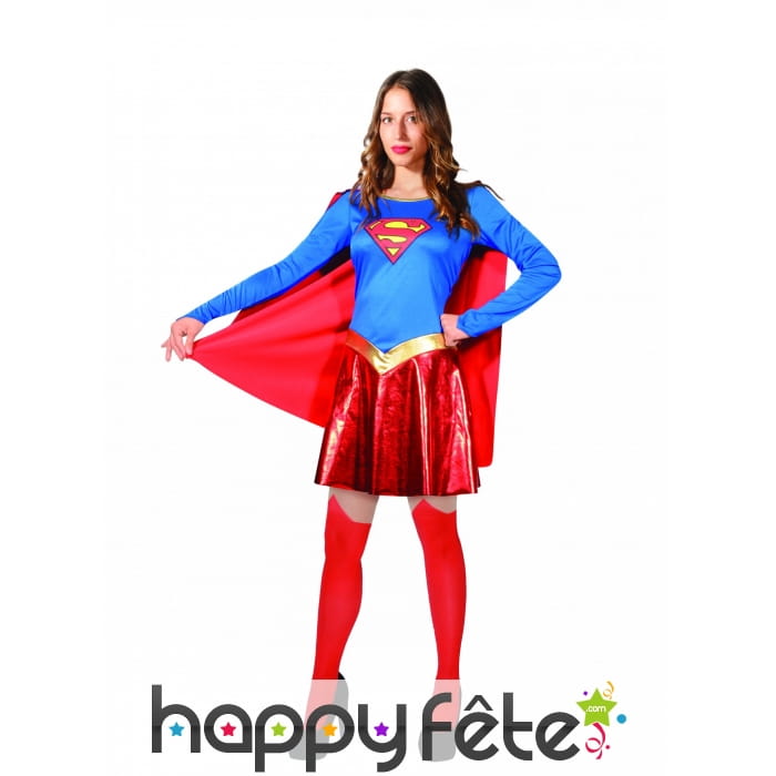 Changez-vous en cousine de Superman le temps d'une soirée en l'honneur de tous les superhéros, avec la tenue de Supergirl pour femme.