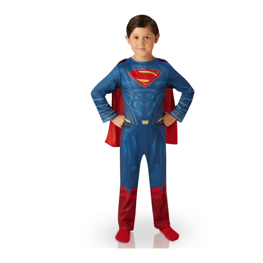 Superman va léguer ses pouvoirs à un petit garçon le temps d'une fête déguisée. Permettez à son plus grand fan de profiter de ce grand privilège à l'occasion de son goûter d'anniversaire ou pour le carnaval. La tenue de superman dawn of justice pour enfant risque fort de vous impressionner. Sous licence Superman, l'ensemble est de couleur rouge et bleue, tout comme le véritable costume du héros. Votre petit garçon enfilera alors une belle combinaison imprimée à manches longues. Vous distinguerez en particulier le grand "S" sur le devant et les abdominaux bien tracés. Une cape viendra peaufiner le déguisement. L'article est disponible en différentes tailles pour les 3 à 8 ans.