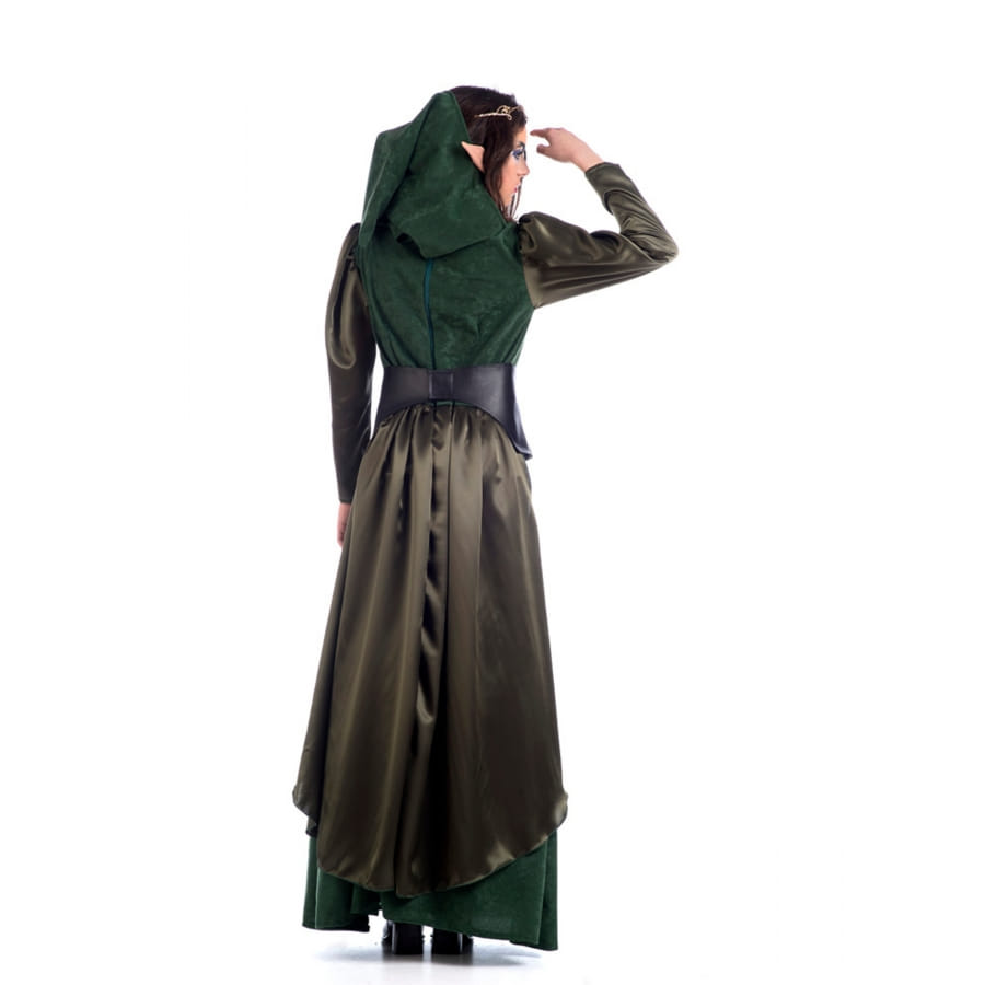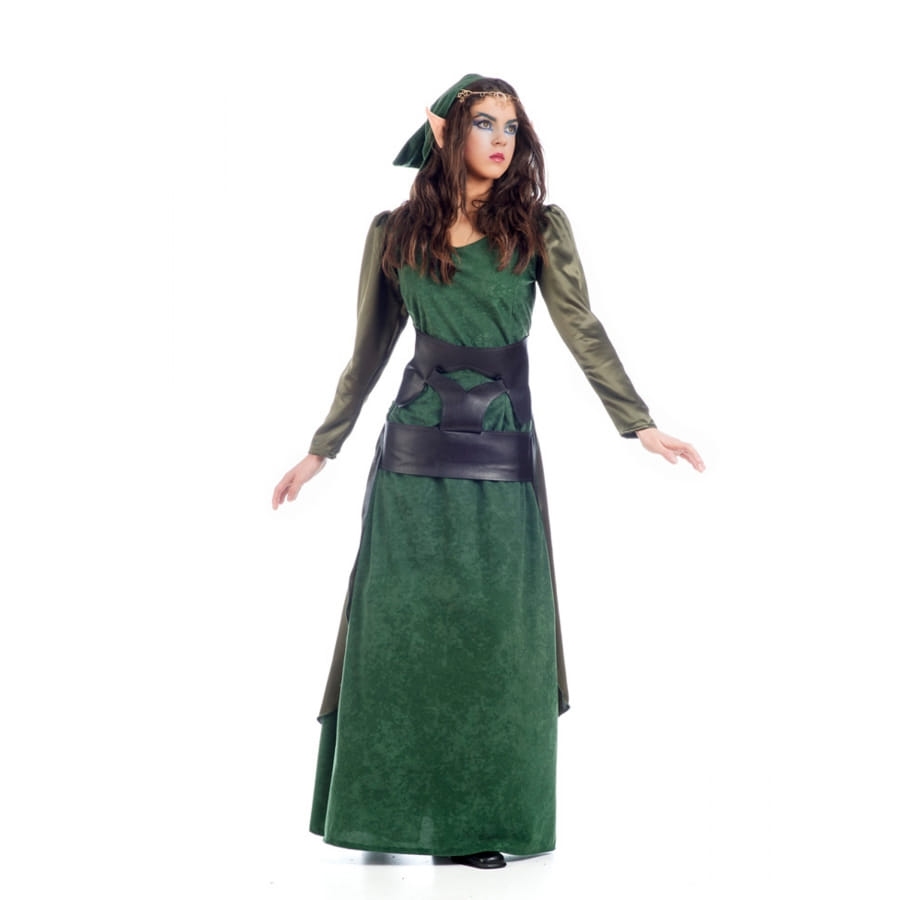 Nous vous proposons cette tenue elfe médiéval aspect velours vert pour femme.