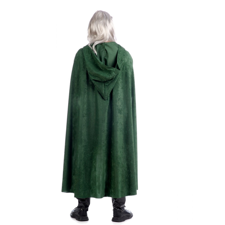 La longue cape de couleur vert possède de élastiques à passer sous les bras et se croisent sur la poitrine.