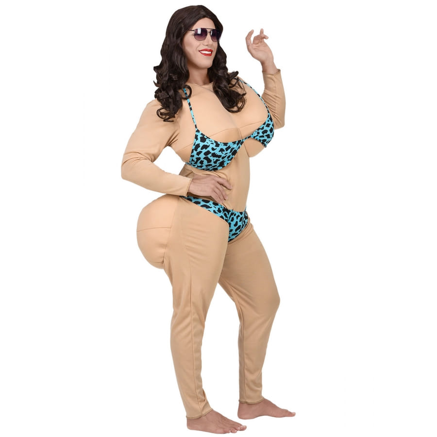 La tenue se constitue d'une combinaison qui reprend la silhouette d'une amatrice de chirurgie esthétique.