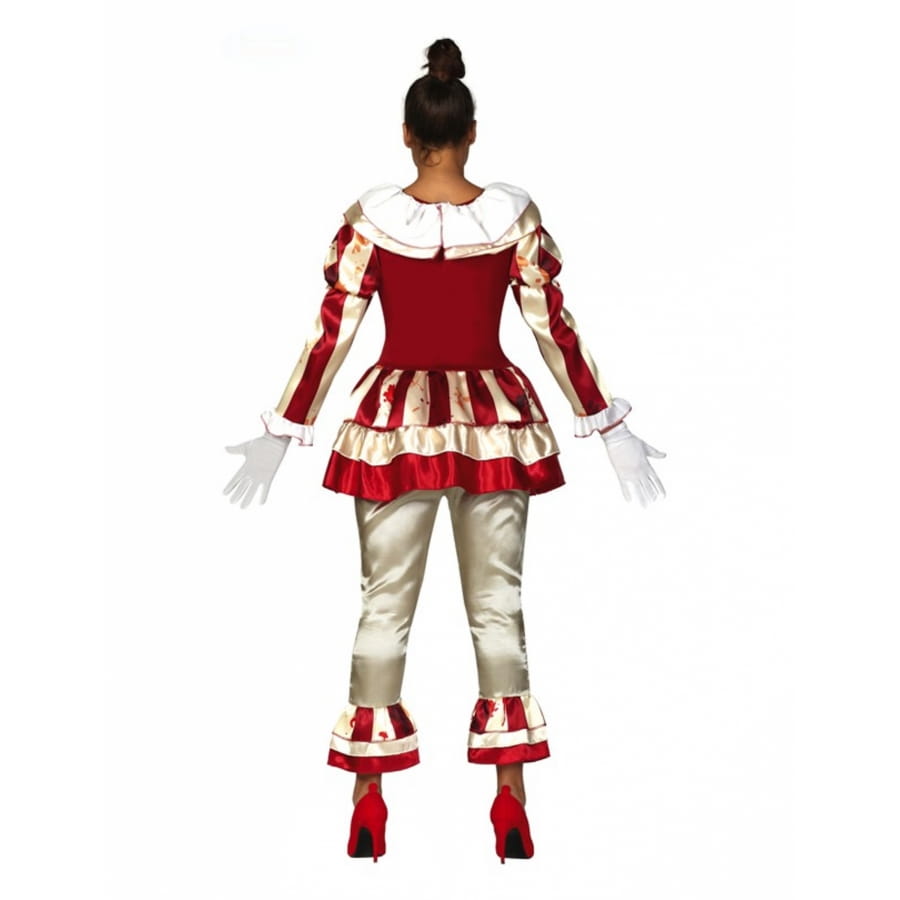 Découvrez cette Tenue lignée clown ensanglanté vintage pour femme qui vous permettra d'incarner un personnage effrayant.