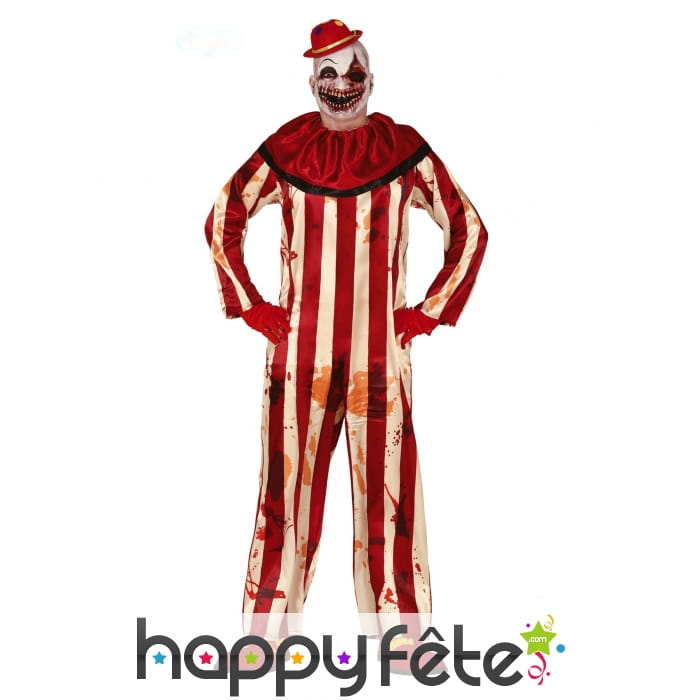 À l'occasion d'halloween, optez pour la tenue lignée de clown ensanglanté pour homme.
