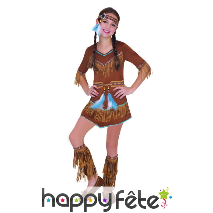 Cette tenue marron courte de petite Indienne, transportera votre fille tout droit au Far West américain, juste le temps d'une soirée déguisée.