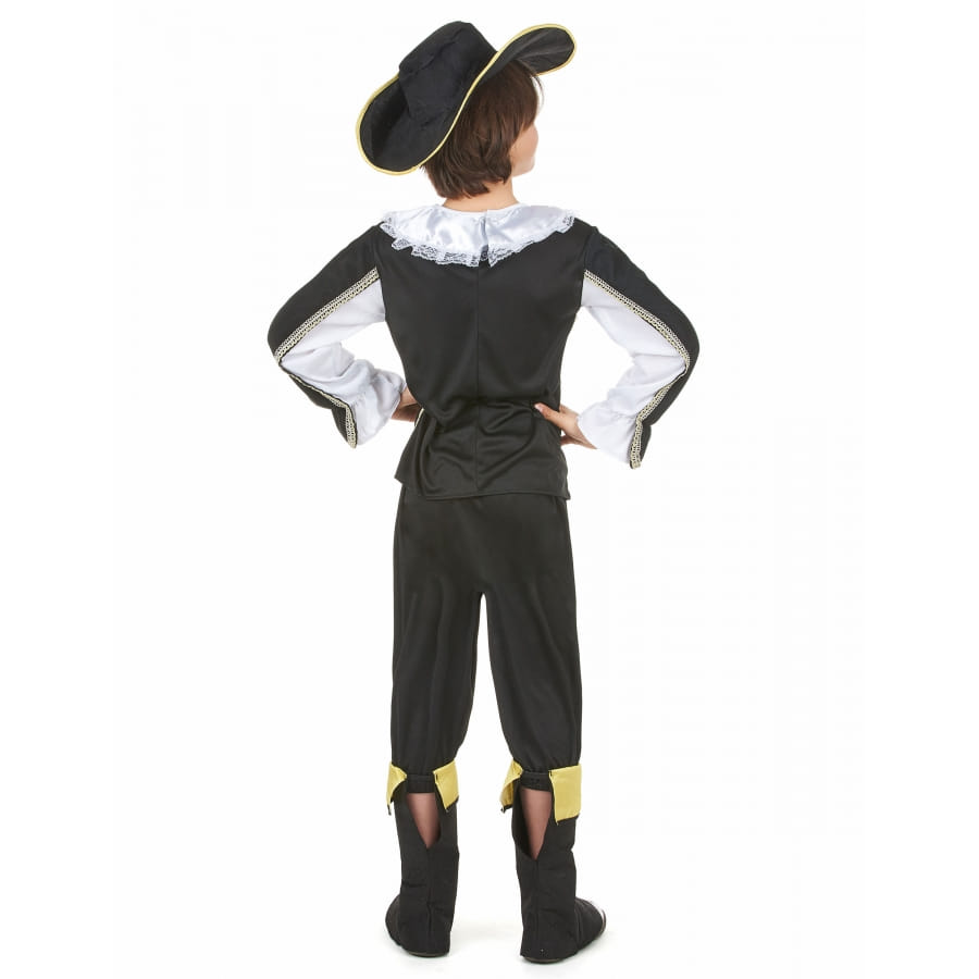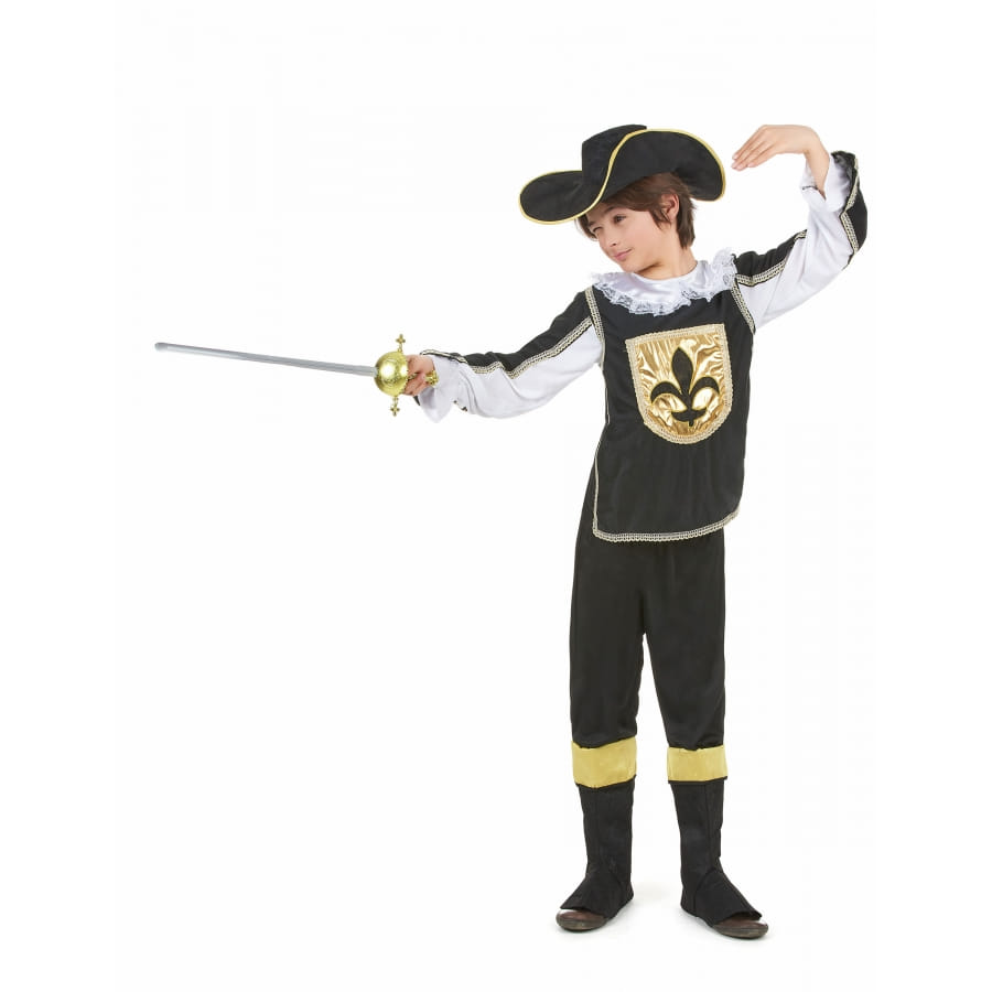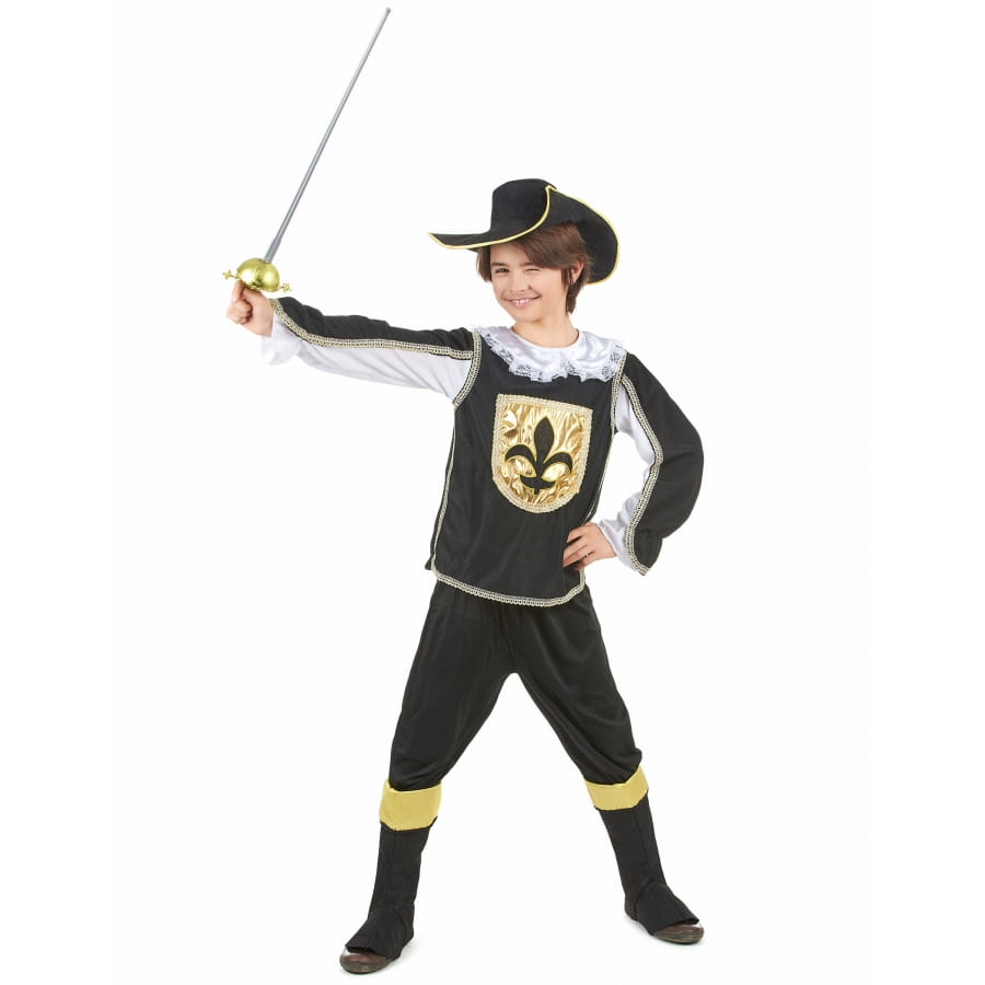 Nous vous présentons ici la Tenue noire et dorée de petit mousquetaire.