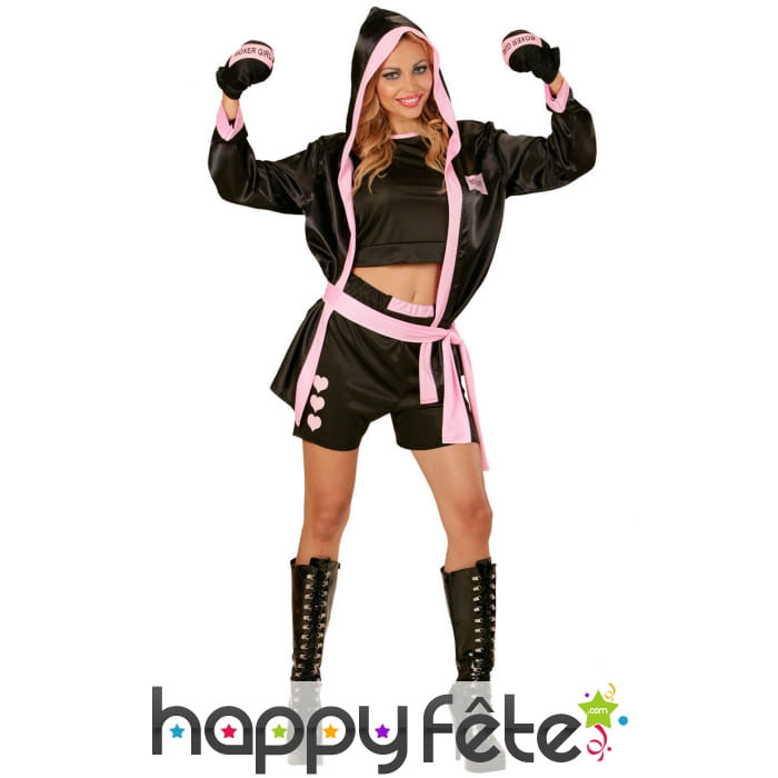 Faites une entrée remarquée lors de votre prochaine soirée sur le thème du sport, en apparaissant dans la tenue noire de boxeuse avec touches de rose.