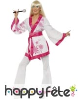 La veste possède aussi une capuche et des finitions roses qui s'harmonisent parfaitement avec le rose de la ceinture à nouer, également fournie.