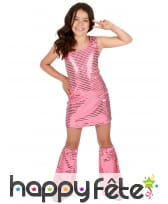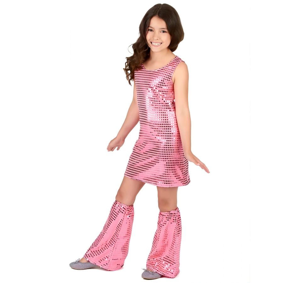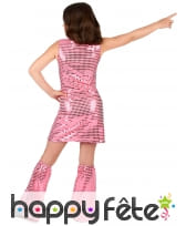 Découvrez la tenue rose disco pour fille! Ce superbe costume vous transporte directement dans l'ère du disco, avec une touche de modernité. L'ensemble est composé d'une élégante robe courte à manches débardeur, qui s'enfile aussi facilement qu'un t-shirt. Mais attendez, ce n'est pas tout : la robe est conçue en tissu rose clair parsemé de sequins brillants. Vous imaginez le spectacle lorsque votre fille se déhanche sous les projecteurs? Magique!