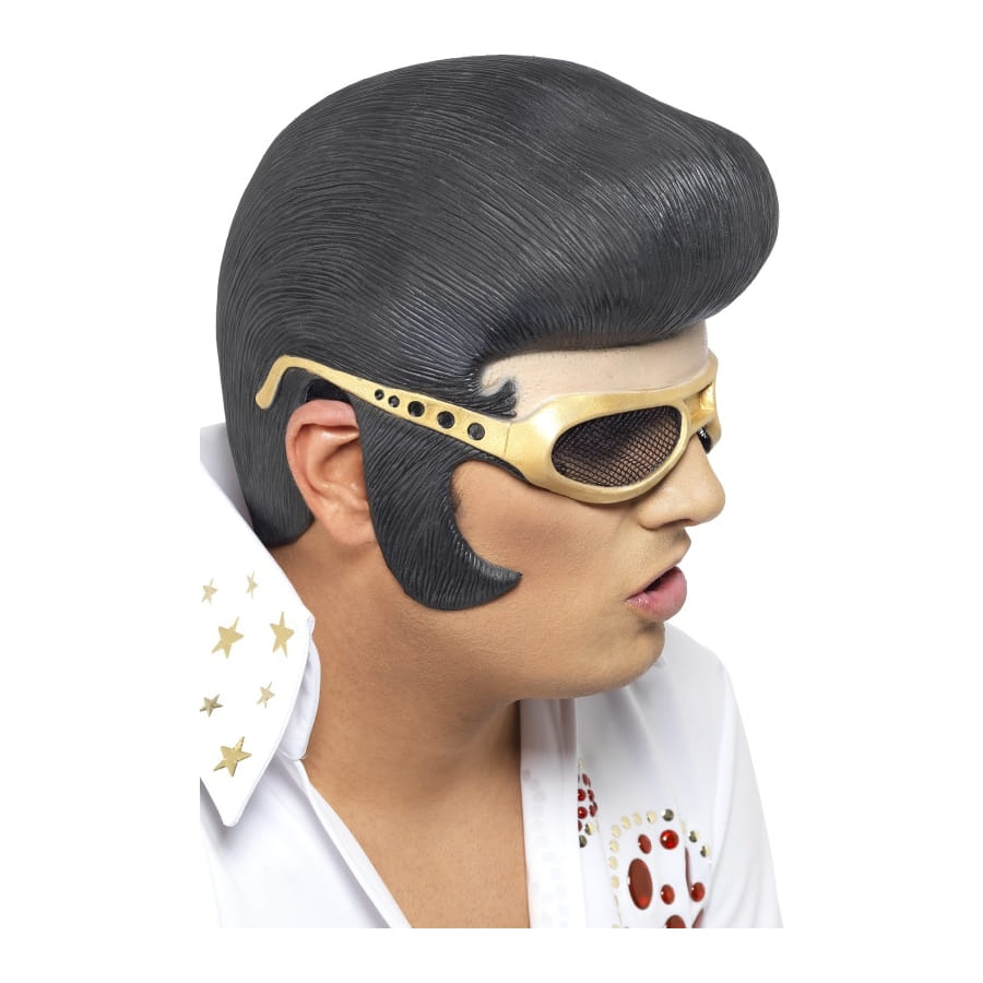 Tête d'Elvis Presley en caoutchouc, pour homme.